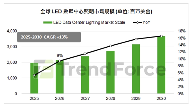 人工智能正以前所未有的速度重塑全球产业格局,而支撑这一切的核心,正是数据中心。随着AI算力需求呈指数级攀升,全球数据中心建设迎来爆发式增长,与之紧密绑定的照明市场,也随之驶入高速扩张的快车道。据权威机构预测,2026年全球数据中心照明市场规模将突破21.6亿美金,这一数字不仅印证了产业升级的强劲动能,更折射出技术与需求共振下的全新机遇。